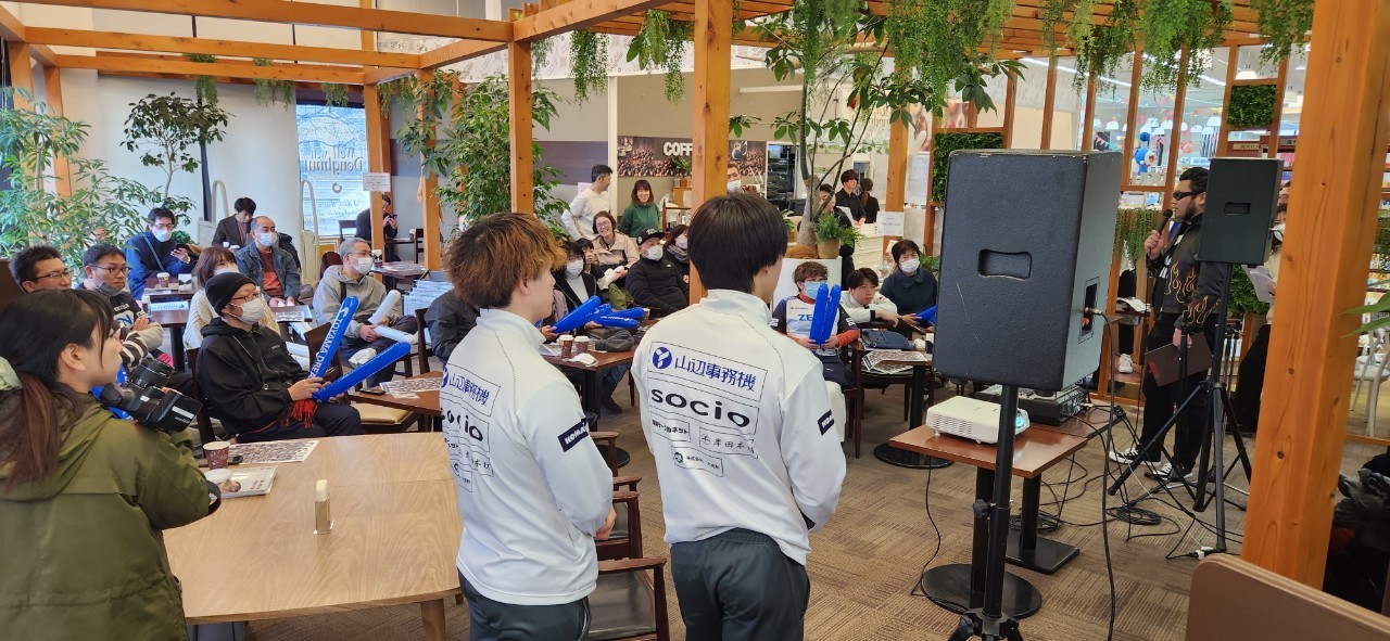 2024年2月10日(土)、アースフレンズBMとの試合のパブリックビューイングが文苑堂書店 福田本店にて開催されました。