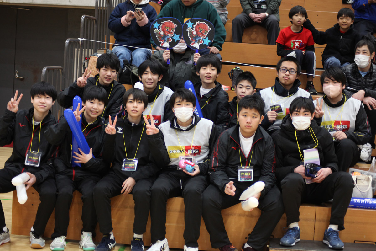 試合前にはボランティアとして会場設営などにもご協力いただき、試合中は白熱した接戦に、中学生ハンドボールの攻守時の応援を取り入れてくれ、スタンドを盛り上げ一体感を醸成してくれました。