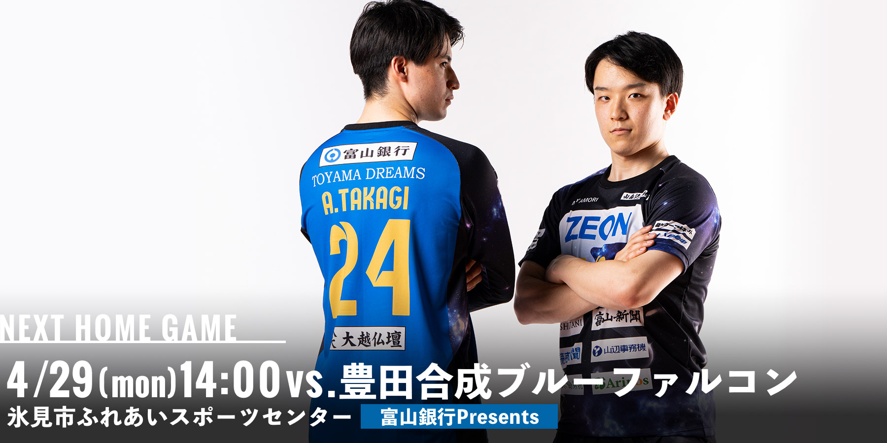 4/29(月・祝)、氷見市ふれあいスポーツセンターで豊田合成ブルーファルコンを迎えます!