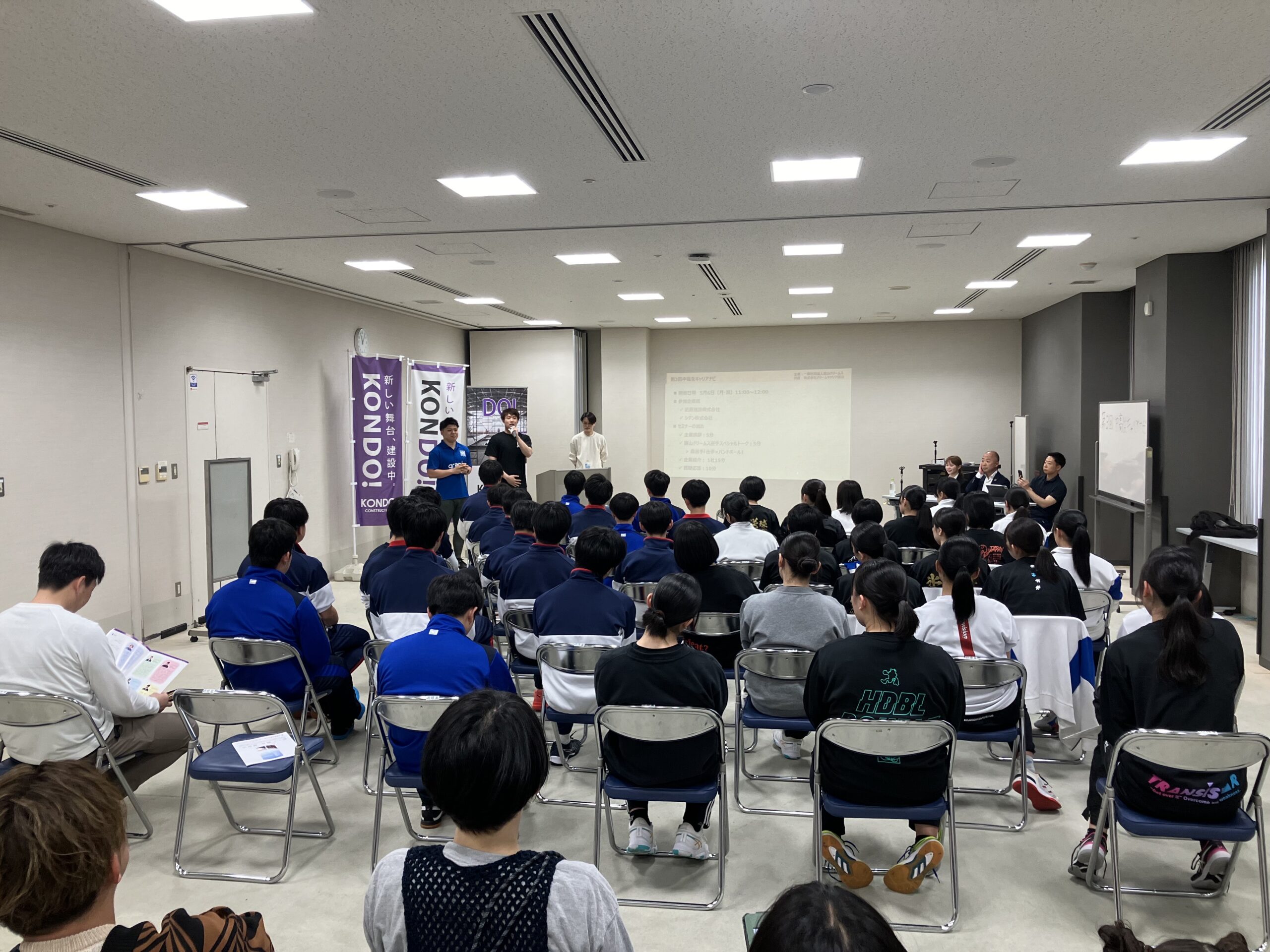 5月6日、富山ドリームスのホーム戦の会場、富山市総合体育館研修室で第3回「中高生キャリアナビ」が開催されました。