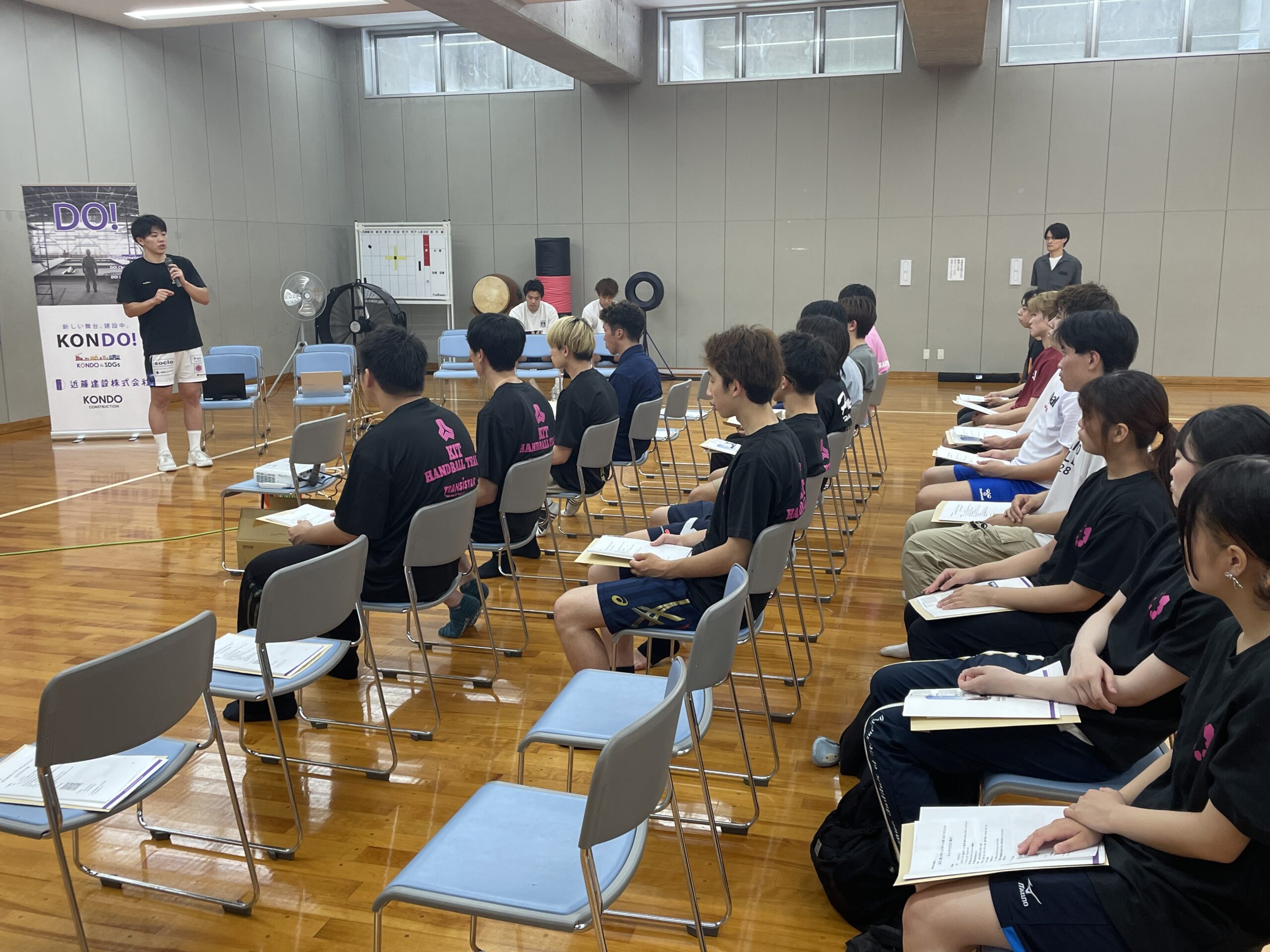 アスリート人材と企業とのマッチング事業を展開するドリームキャリア富山と富山ドリームスは、6日、氷見市ふれあいスポーツセンターで、金沢工業大学ハンドボール部の学生を対象にしたキャリアナビを開催しました。