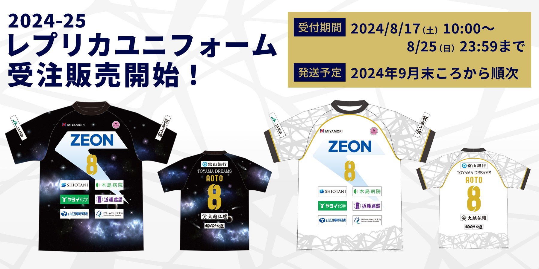 2024-25シーズン新ユニフォームの受注販売を2024年8月17日(土)10:00〜開始いたしました。