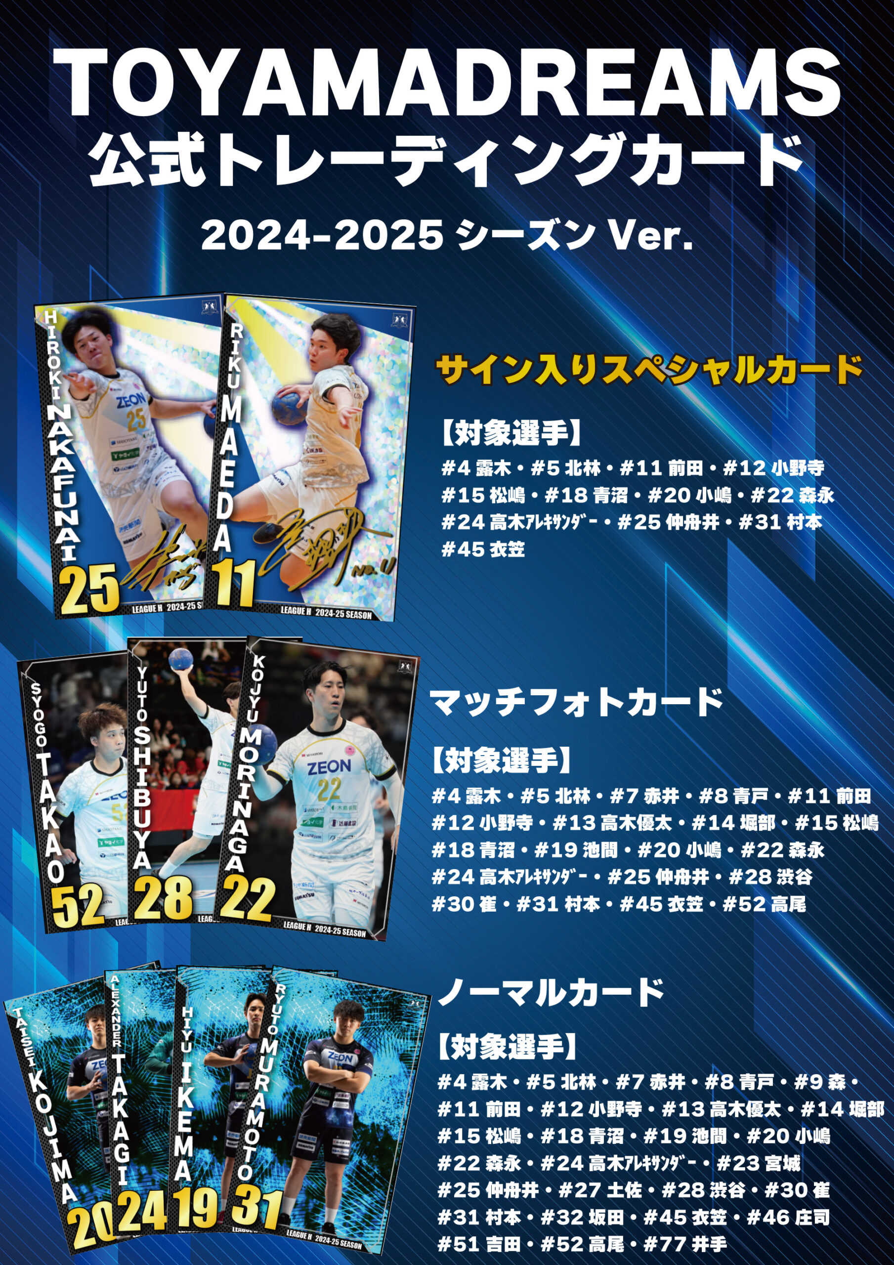 新グッズ「富山ドリームス 公式トレーディングカード 2024-2025 シーズン Ver.」発売のお知らせ