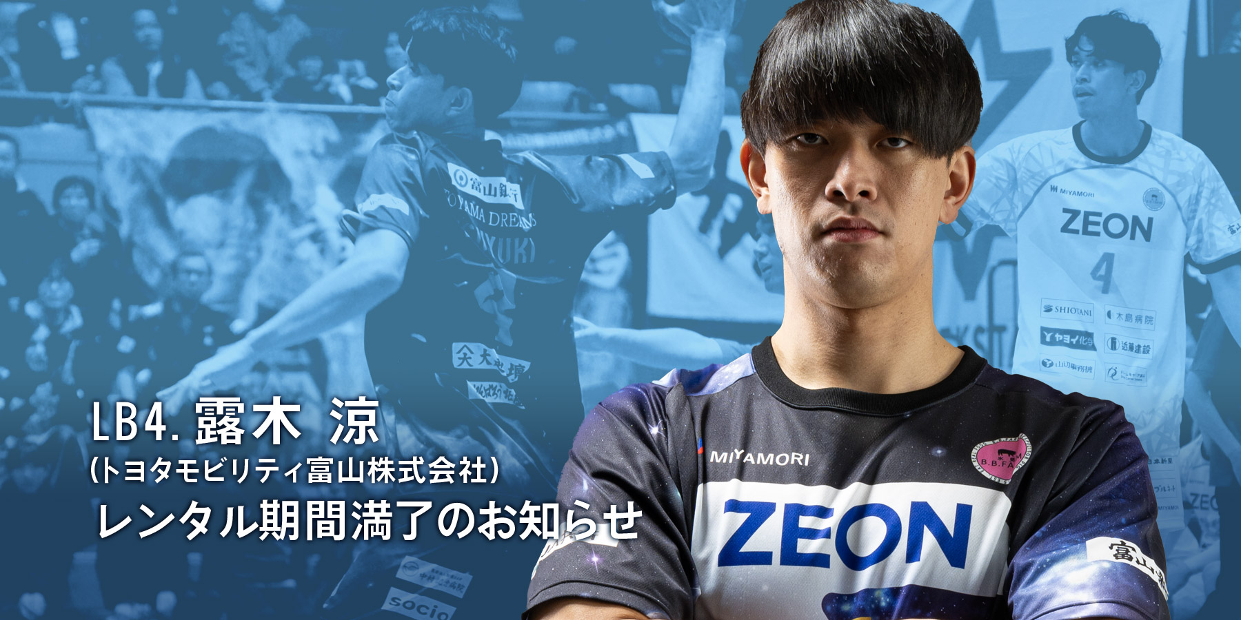 露木 涼選手(トヨタモビリティ富山株式会社) レンタル期間満了のお知らせ