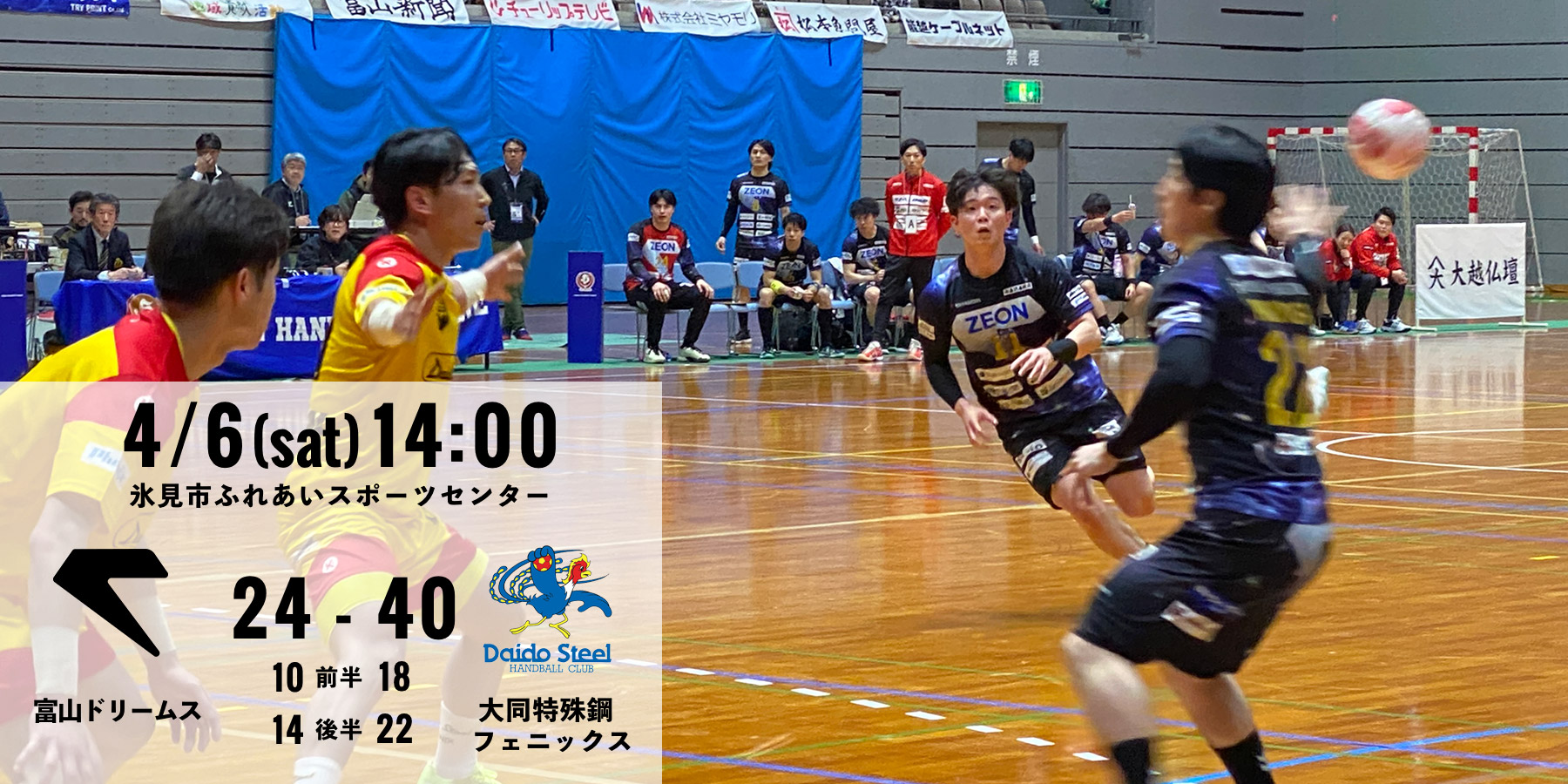 【試合結果】4/6(SAT) 14:00 vs.大同特殊鋼フェニックス