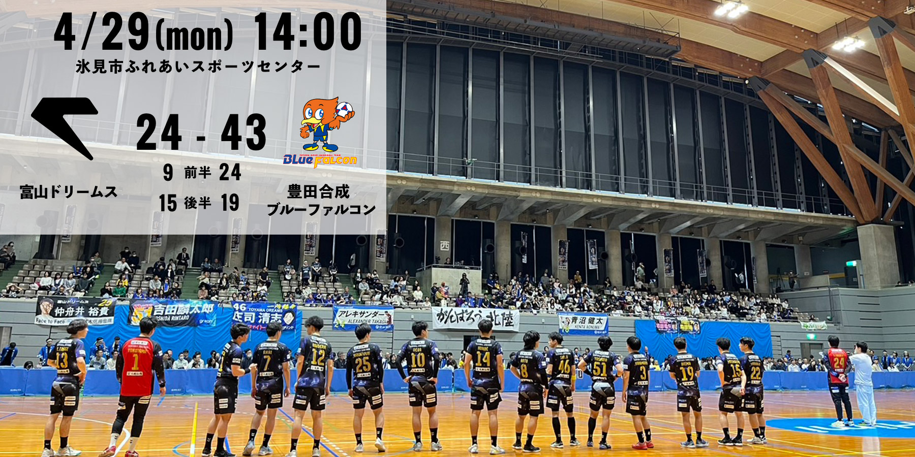 【試合結果】4/29(MON) 14:00 vs.豊田合成ブルーファルコン
